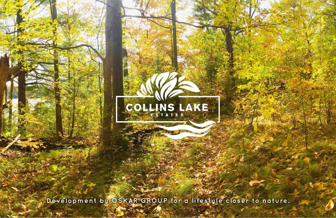 This proposed subdivision is located at the south edge of the Town of South Frontenac and will introduce 50+ rural estate lots with a minimum of 2 acres. Designed with walking trails and dedicated areas for recreational uses, homeowners can enjoy beautiful views of Collins Lake while surrounded with the soft sounds of nature.