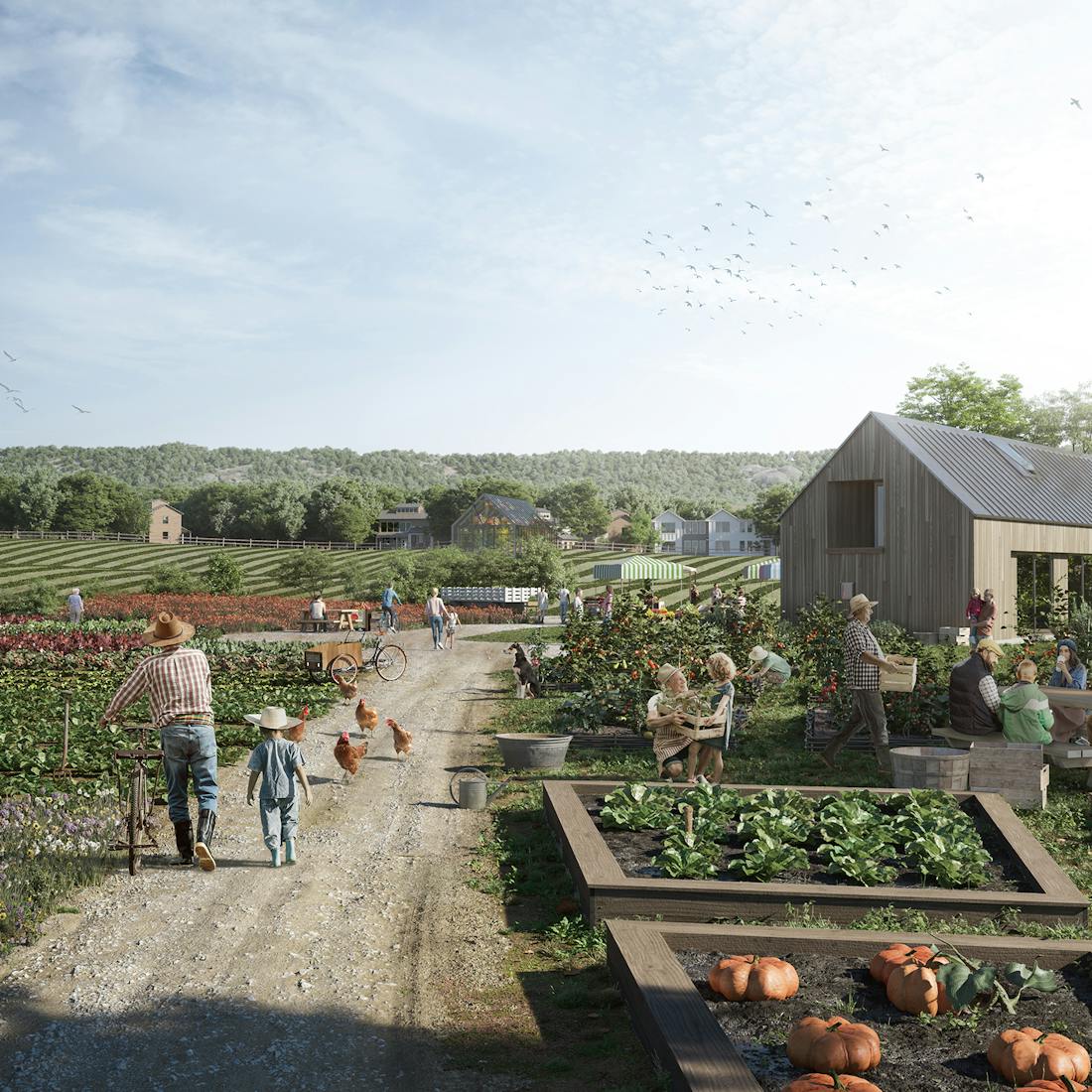 Homes and farmland coexist harmoniously, neighbours know their farmers, and local food becomes a shared source of pride. It’s a place where wellbeing, connection, and stewardship come full circle.