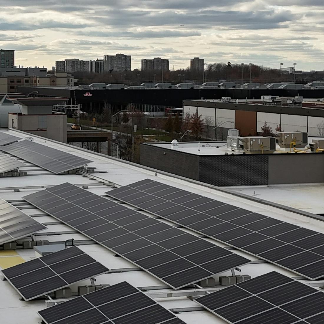On-site energy generation via roof-mounted panels.